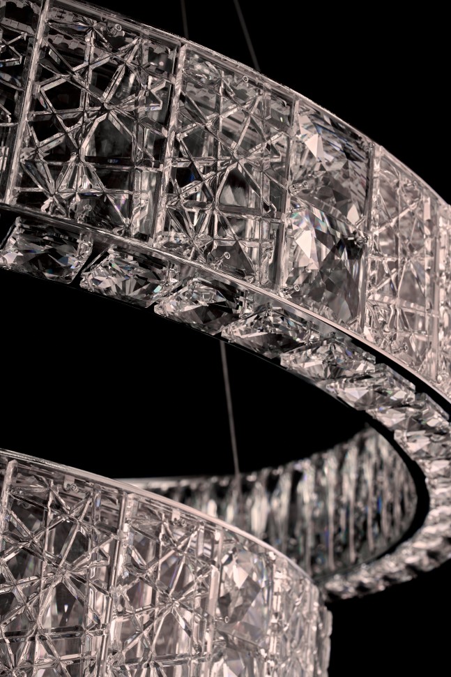 Впечатляющее сияние хрусталя подчеркнуто переливами корпуса светильника. Сложная, фантазийная огранка хрусталя, создает тысячи искрящихся переливов, виртуозную игру света. Корпус светильников - металл, гальваника цвета золото и хром. Источники света - встроенные светодиоды. Коллекция представлена люстрами различных форм и размеров и настенными бра в двух размерах.