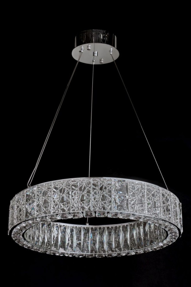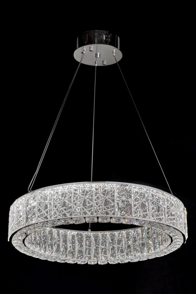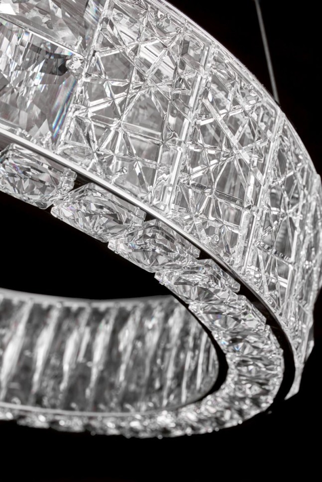 Впечатляющее сияние хрусталя подчеркнуто переливами корпуса светильника. Сложная, фантазийная огранка хрусталя, создает тысячи искрящихся переливов, виртуозную игру света. Корпус светильников - металл, гальваника цвета золото и хром. Источники света - встроенные светодиоды. Коллекция представлена люстрами различных форм и размеров и настенными бра в двух размерах.