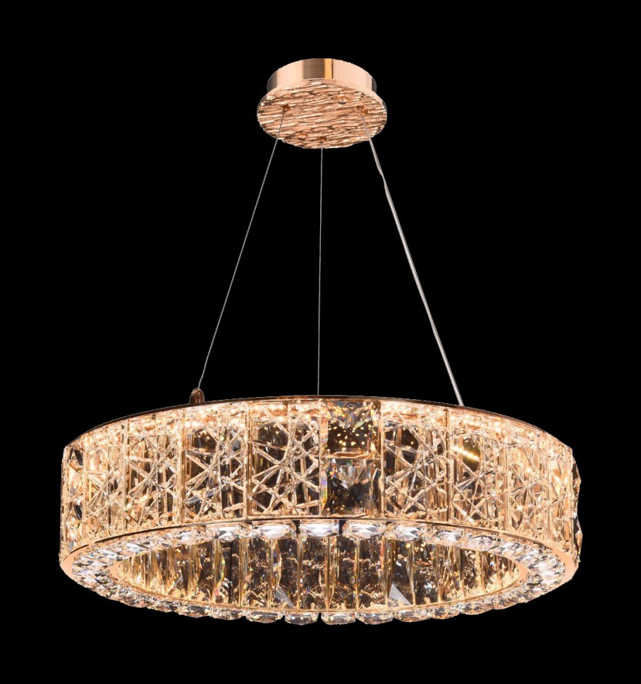 Восторг! Именно так переводится название коллекции. И оно в полной мере передает эмоции от дизайна. Впечатляющее сияние хрусталя подчеркнуто золотистыми переливами корпуса светильников. Люстры и бра безупречных классических форм восхищают теплыми оттенками медового янтаря. Его сложная, фантазийная огранка создает тысячи искрящихся переливов, виртуозную игру света. Корпус светильников - металл, гальваника цвета золото. Плафоны - хрусталь самого высокого качества. Источники света - встроенные светодиоды. Коллекция представлена большой люстрой с двумя кольцами 80 и 60 см., люстрами поменьше с 1 кольцом, диаметрами 80 и 50 см. и настенными бра в двух размерах.