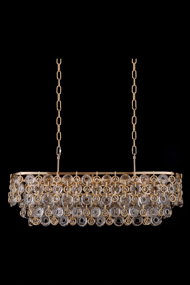 В переводе с итальянского название коллекции – «колокольчик». Светильники Campanella отличает нежный дизайн, имеющий сходство с этим красивым цветком. Декоративные элементы плафонов подвижны, как чашечки колокольчиков на ветру. Они выполнены из хрусталя высшего качества, в форме колец. Каждое кольцо имеет множество граней, невероятно эффектно отражающих свет. Хрустальные кольца дополнены кольцами из металла в цвете золота. Арматура светильников – из металла с гальваническим покрытием цвета золота. Коллекция представлена люстрами различных размеров и настенным светильником.