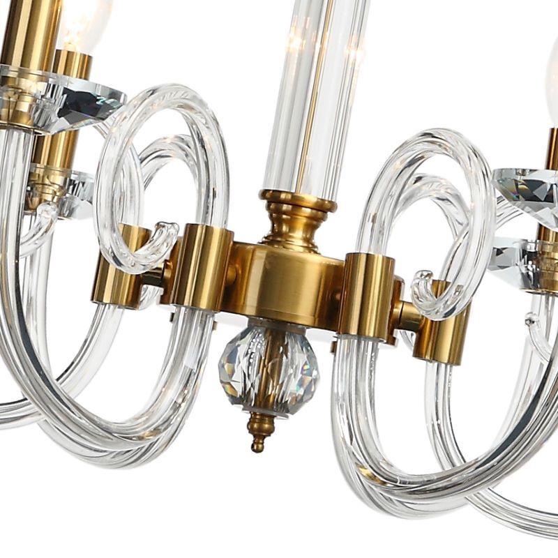 Люстра подвесная из коллекции Glass выполнена из металла, гальванизированного в цвет бронзы. Стеклянные рожки выдуваются вручную. Декоративные розетки выполнены из массива хрусталя ручной калибровки. Премиальное качество и неповторимыи? дизаи?н светильников идеально подои?дут как в классические, так и современные интерьеры.