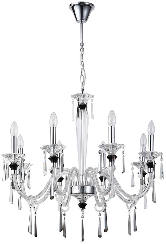 Люстра подвесная из коллекции Lussi выполнена из металла, гальванизированного в цвет хрома, и декорирована прозрачным и черным хрусталем высшей категории. Стеклянные рожки выдуваются вручную. Премиальное качество и неповторимыи? дизаи?н светильников идеально подои?дут как в классические, так и современные интерьеры.