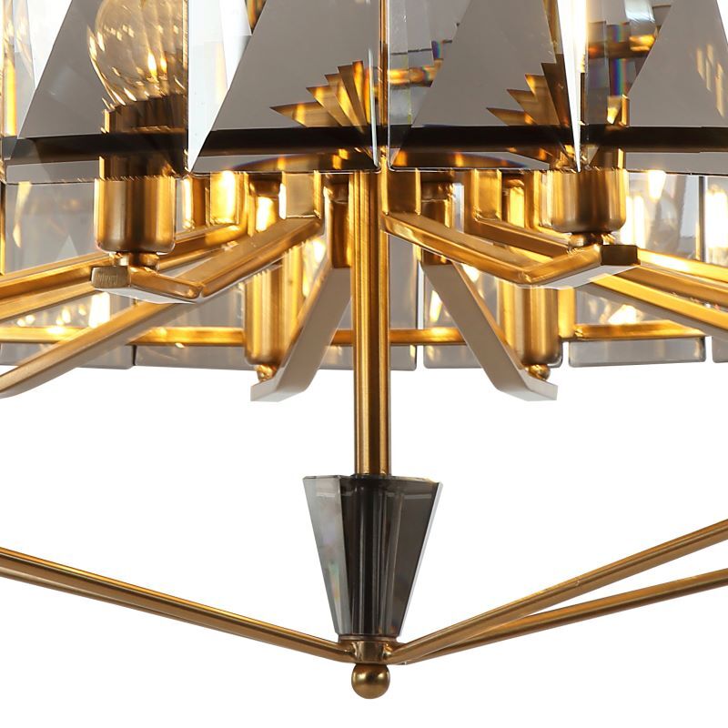 Люстра подвесная из коллекции Avenue выполнена из металла, гальванизированного в цвет бронзы, и декорирована дымчатым хрусталем высшей категории. Премиальное качество и неповторимыи? дизаи?н светильников идеально подои?дут как в классические, так и современные интерьеры.