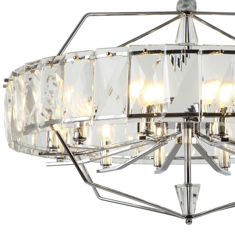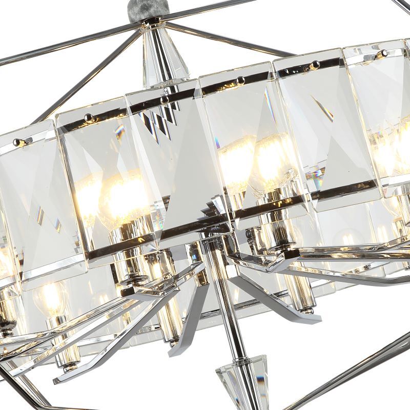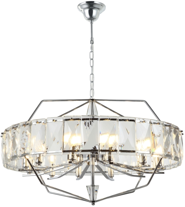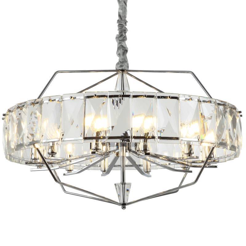 Люстра подвесная из коллекции Avenue выполнена из металла, гальванизированного в цвет хрома, и декорирована прозрачным хрусталем высшей категории. Премиальное качество и неповторимыи? дизаи?н светильников идеально подои?дут как в классические, так и современные интерьеры.