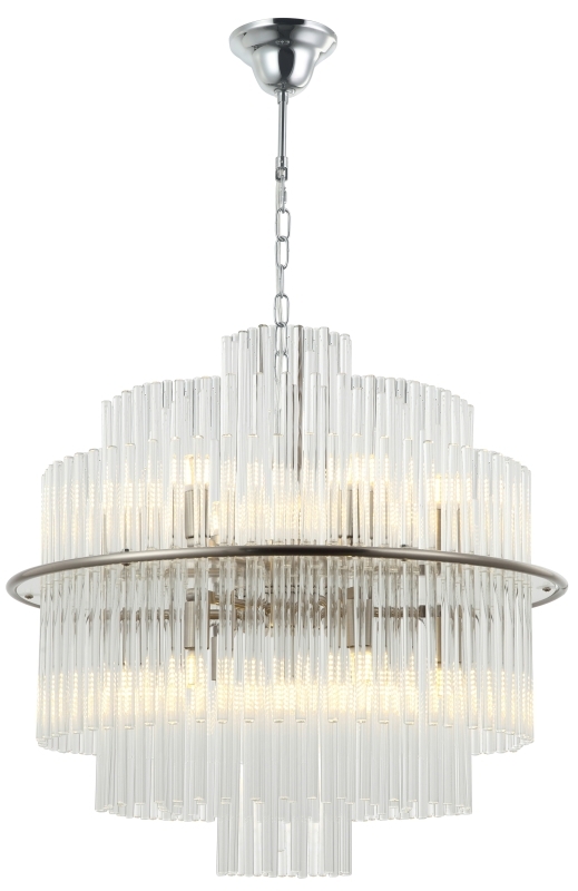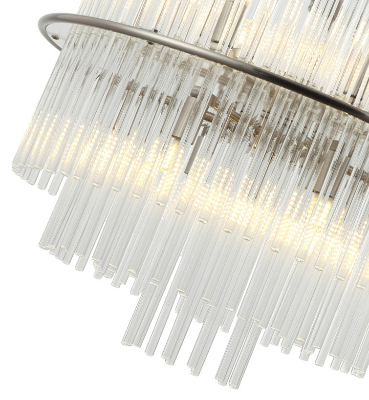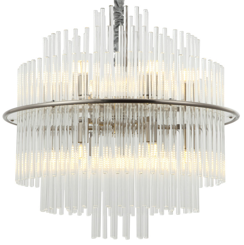 Люстра подвесная из коллекции Eclipse выполнена из металла, гальванизированного в цвет никеля, и декорирована стеклянными трубочками, установленными на прозрачный акрил. Декор окружён кантом из металла, гальванизированного в цвет арматуры. Современная форма и высокое качество светильников идеально подойдут как в классические, так и современные интерьеры.