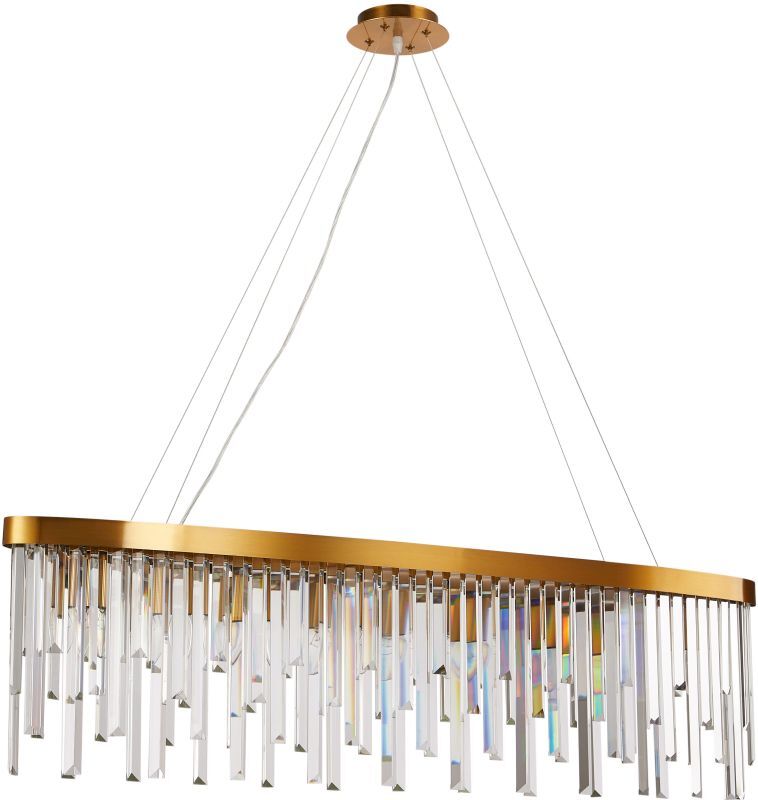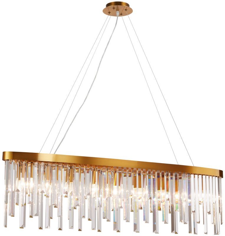 Люстра подвесная из коллекции Venecia вытянутой формы выполнена из металла, гальванизированного в цвет бронзы, и декорирована прозрачным хрусталем высшей категории прямоугольной формы разной длины. Современная форма и высокое качество светильников идеально подойдут как в классические, так и современные интерьеры.