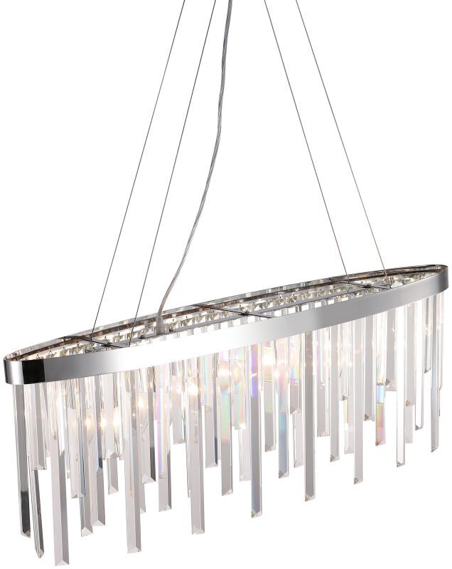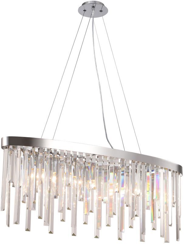 Люстра подвесная из коллекции Venecia вытянутой формы выполнена из металла, гальванизированного в цвет хрома, и декорирована прозрачным хрусталем высшей категории прямоугольной формы разной длины. Современная форма и высокое качество светильников идеально подойдут как в классические, так и современные интерьеры.