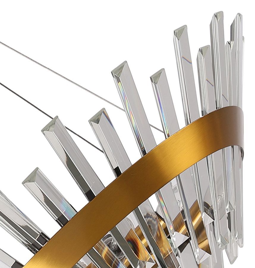 Люстра подвесная из коллекции Snowy выполнена из металла, гальванизированного в цвет бронзы, и декорирована прозрачным хрусталем высшей категории прямоугольной формы разных размеров. Уникальный дизайн придает светильнику элегантность.