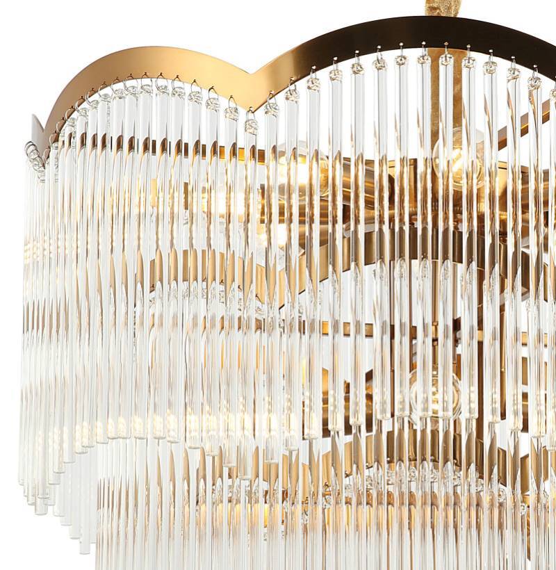 Люстра подвесная из коллекции Seauty выполнена из металла, гальванизированного в цвет бронзы, и декорирована прозрачными стеклянными трубочками. Премиальное качество и неповторимыи? дизаи?н светильников идеально подои?дут в современные и дизайнерские интерьеры.