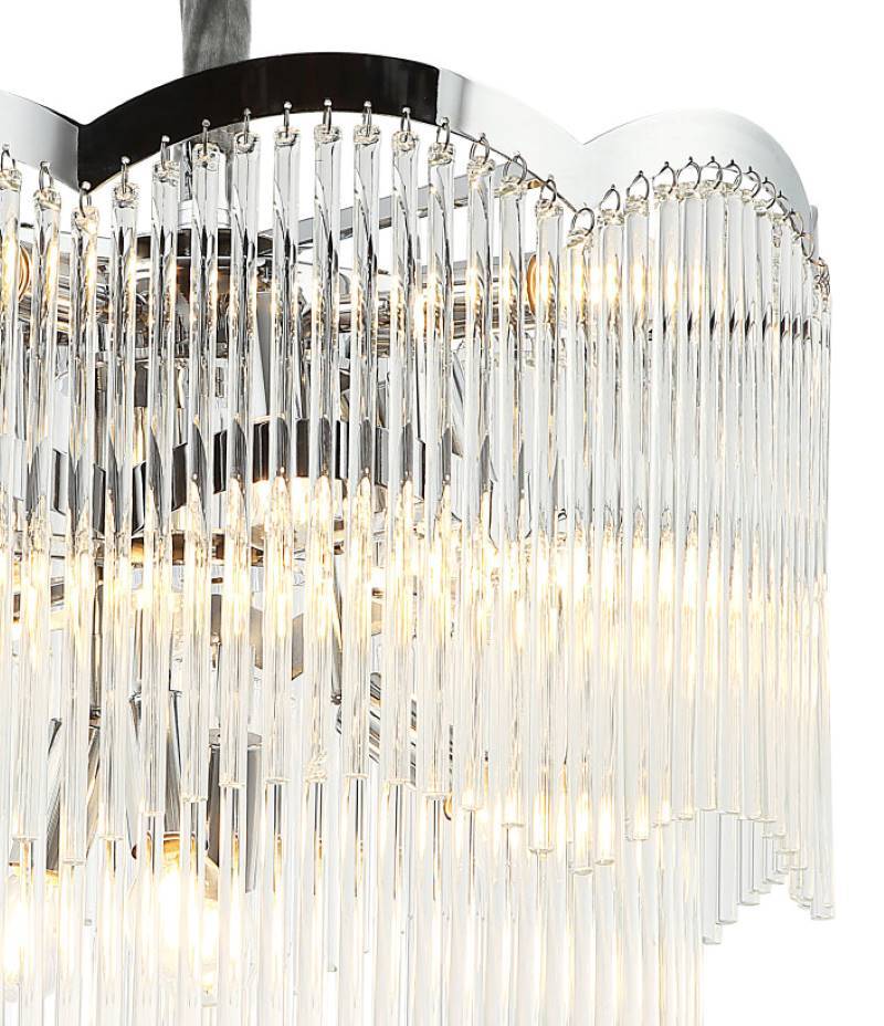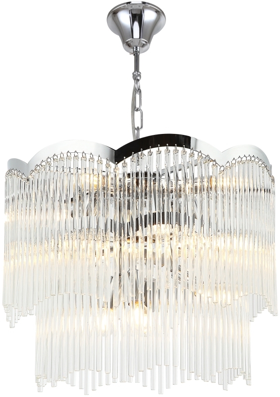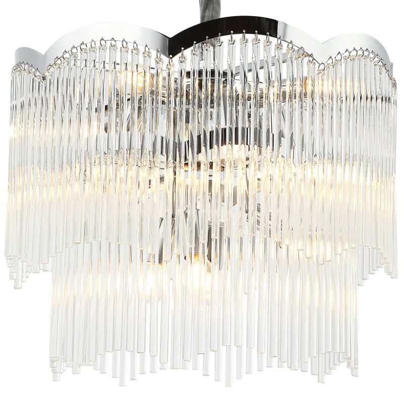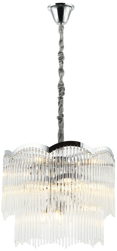 Люстра подвесная из коллекции Seauty выполнена из металла, гальванизированного в цвет хрома, и декорирована прозрачными стеклянными трубочками. Премиальное качество и неповторимыи? дизаи?н светильников идеально подои?дут в современные и дизайнерские интерьеры.