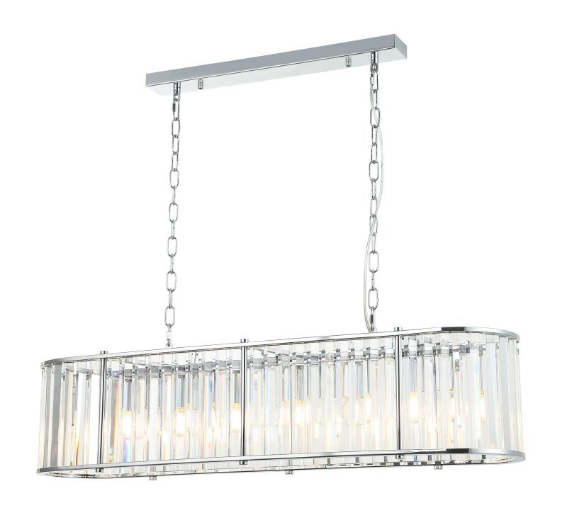 Люстра подвесная вытянутой формы из коллекции Washer выполнена из металла, гальванизированного в цвет хрома, и декорирована прозрачным хрусталем высшей категории прямоугольной формы. Каркас отделан металлическими кантами и дополнительно закрепленными металлическими стержнями, гальванизированными в цвет арматуры.