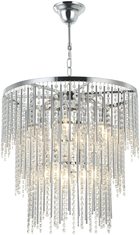 Люстра подвесная из коллекции Grandex выполнена из металла, гальванизированного в цвет хрома, и декорирована бусами из прозрачного хрусталя высшей категории в форме октагон и металлическими трубочками, гальванизированными в цвет арматуры. Люстра коллекции выглядит стильно и респектабельно. Премиальное качество и неповторимыи? дизаи?н светильников идеально подои?дут как в классические, так и современные дизайнерские интерьеры.