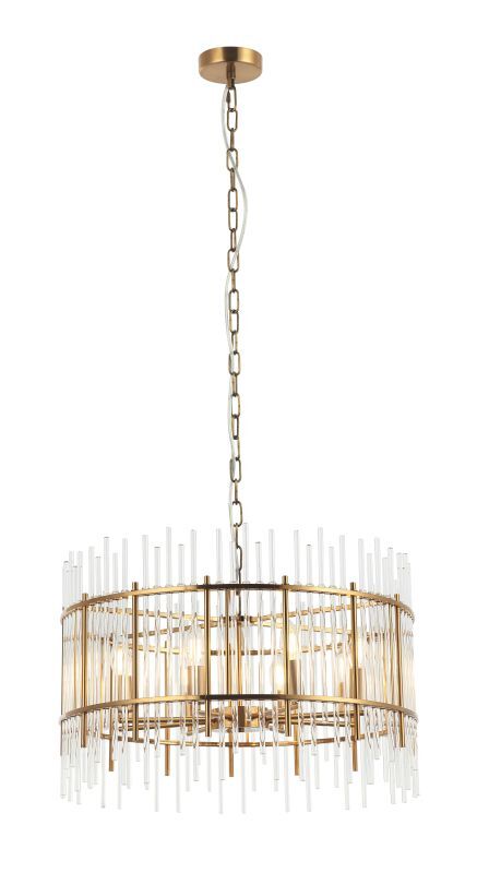 Люстра подвесная из коллекции Sia выполнена из металла, гальванизированного в цвет бронзы, и декорирована прозрачными стеклянными трубочками. Каркас люстры отделан металлическими кантами и дополнительно закрепленными металлическими стержнями, гальванизированными в цвет арматуры. Премиальное качество и неповторимыи? дизаи?н светильников идеально подои?дут как в классические, так и современные дизайнерские интерьеры.