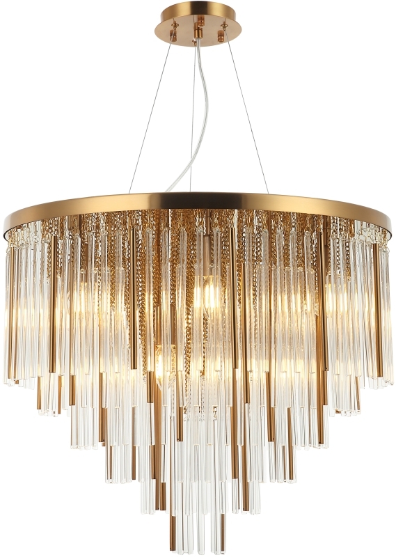 Люстра подвесная из коллекции Style rain выполнена из металла, гальванизированного в цвет бронзы, и декорирована гармоничным сочетанием прозрачных стеклянных и металлических трубочек и цепочек, гальванизированных в цвет арматуры. Люстра коллекции выглядит стильно и респектабельно. Премиальное качество и неповторимыи? дизаи?н светильников идеально подои?дут как в классические, так и современные дизайнерские интерьеры.