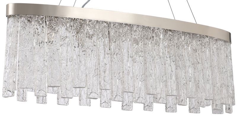 Люстра подвесная вытянутой формы из коллекции Frostyle выполнена из металла, гальванизированного в цвет хрома, и декорирована высококачественным стеклом ручной работы, создающим эффект ледяной свежести. Современная форма светильников и высокое качество идеально подойдут как в классические, так и современные интерьеры.