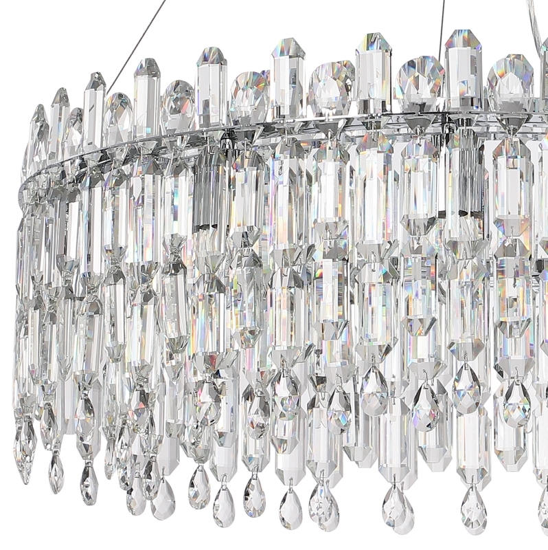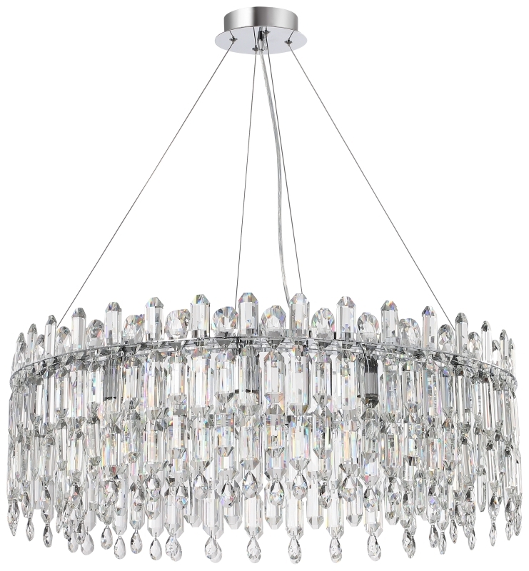 Люстра подвесная из коллекции Legacy выполнена из металла, гальванизированного в цвет хрома, и декорирована прозрачным хрусталем высшей категории вытянутой и округлой формы. Оригинальная форма хрусталя придает люстре утонченность и благородство.