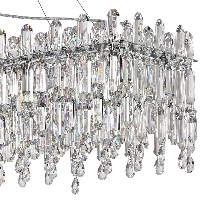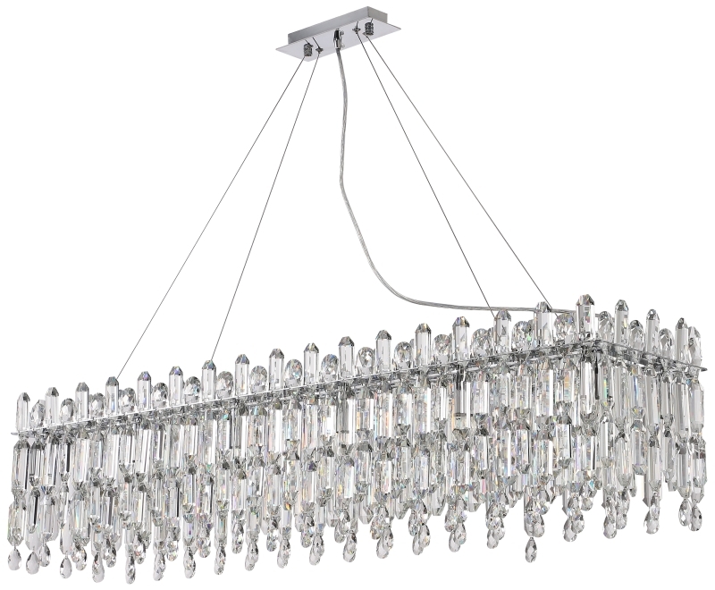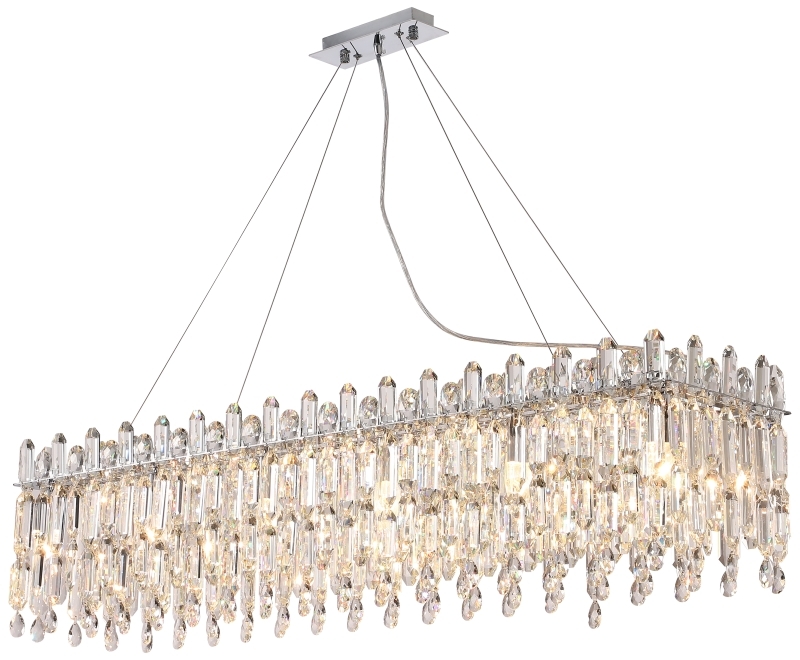 Люстра подвесная вытянутой формы из коллекции Legacy выполнена из металла, гальванизированного в цвет хрома, и декорирована прозрачным хрусталем высшей категории вытянутой и округлой формы. Оригинальная форма хрусталя придает люстре утонченность и благородство.