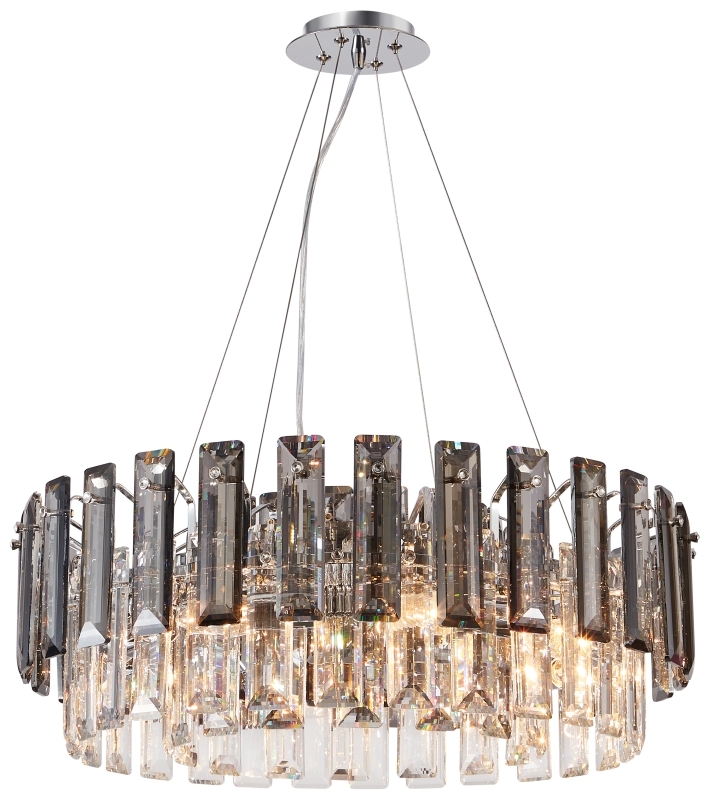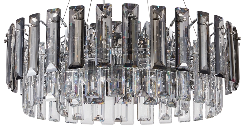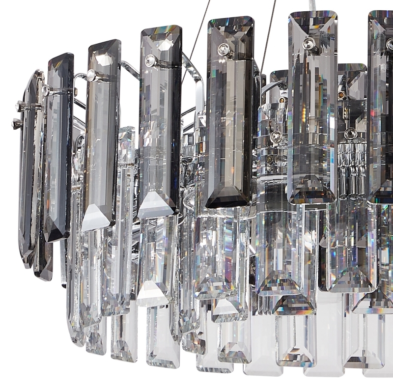 Люстра подвесная из коллекции Ton выполнена из металла, гальванизированного в цвет хрома, и декорирована прозрачным и дымчатым хрусталем высшей категории прямоугольной формы. Люстра выглядит респектабельно и современно.