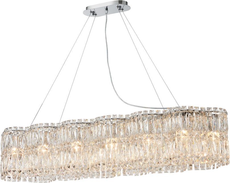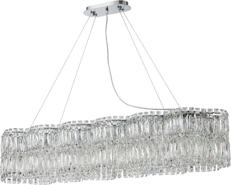 Люстра подвесная вытянутой формы из коллекции Admire выполнена из металла, гальванизированного в цвет хрома, и декорирована узкими прямоугольными подвесками из хрусталя высшего качества. Светильники коллекции отличает актуальный дизайн в виде волнистой линии. Современная форма и высокое качество светильников идеально подойдут как в классические, так и современные интерьеры. Из данной коллекции светильников можно сделать индивидуальный заказ любого цвета и размера.