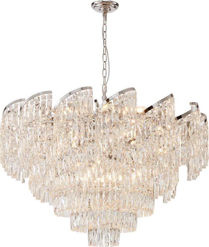 Люстра подвесная из коллекции Sapparo выполнена из металла, гальванизированного в цвет хрома, и декорирована хрусталем вытянутой формы высшей категории. Хрусталь многослойно располагается на изогнутых металлических элементах в виде спирали. Современная форма и высокое качество светильноков идеально подойдут как в классические, так и современные интерьеры. Из данной коллекции светильников можно сделать индивидуальный заказ любого цвета и размера.