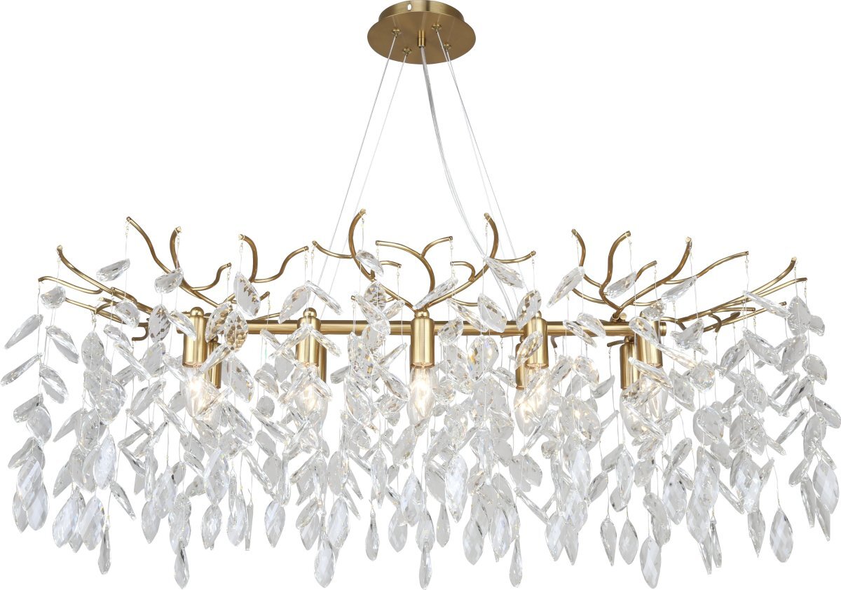 Люстра подвесная вытянутой формы коллекции RAMO выполнена из металла, гальванизированного в цвет бронзы, и декорирована гроздьями из хрусталя винтажной формы. Отличительной особенностью данной коллекции является ручное изготовление каркаса с дополнительной полировкой стыков арматуры и увеличенным количеством хрустальных подвесок (69 веточек по 5 кристаллов).