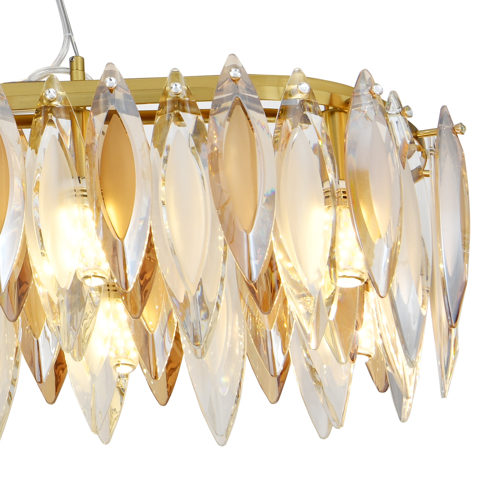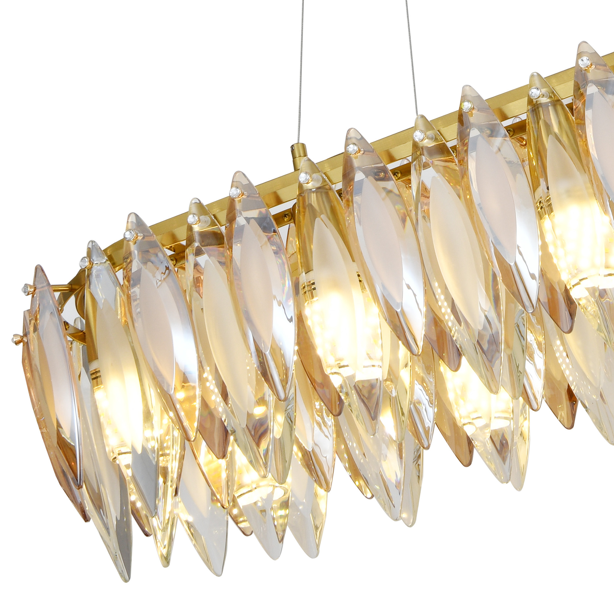 Люстра подвесная вытянутой формы из коллекции New Ton выполнена из металла, гальванизированного в цвет бронзы, и декорирована комбинацией прозрачного и янтарного хрусталя вытянутой формы. Премиальное качество хрусталя высшей категории и неповторимый дизайн светильника идеально подойдут как в классические, так и современные интерьеры. Из данной коллекции светильников можно сделать индивидуальный заказ любого цвета и размера.