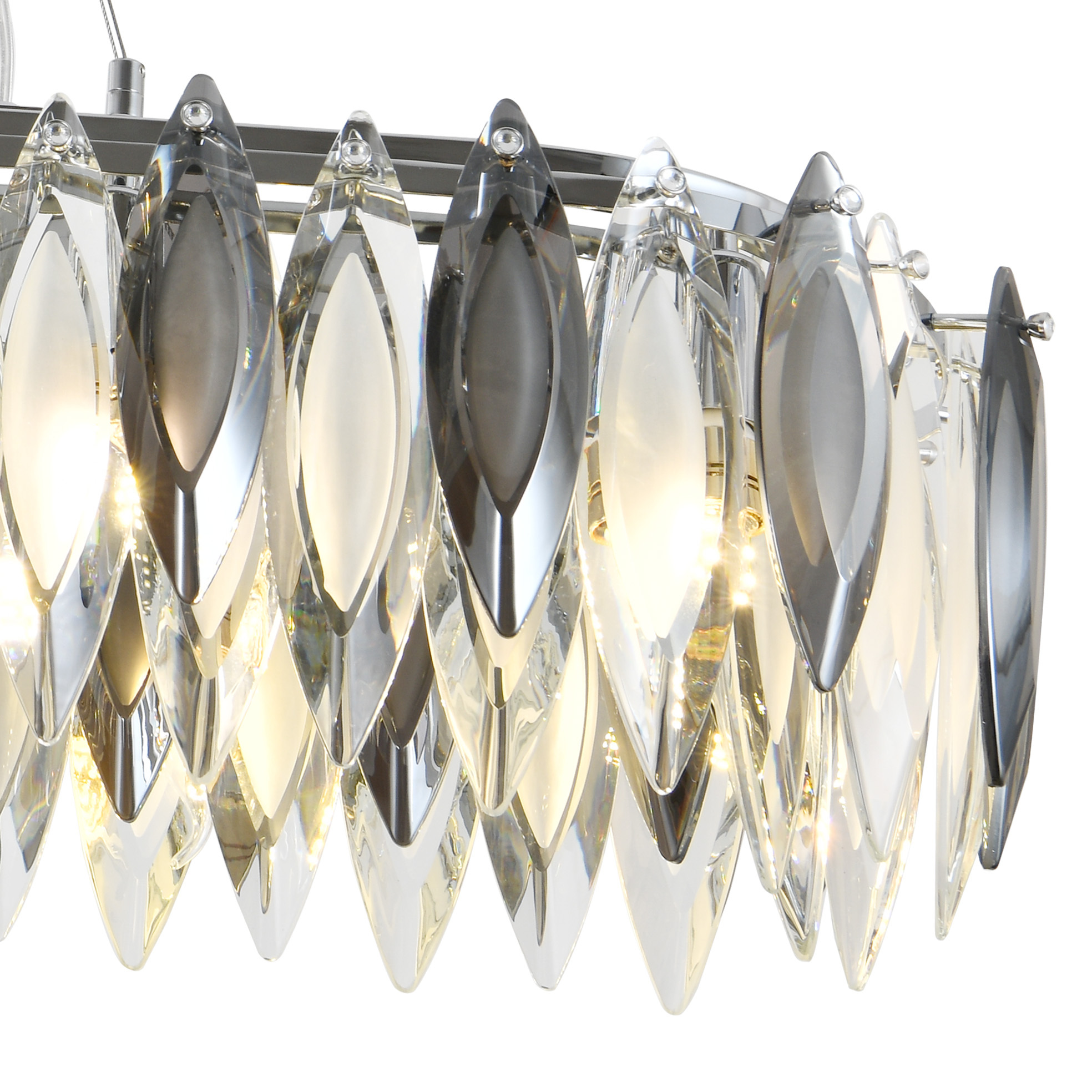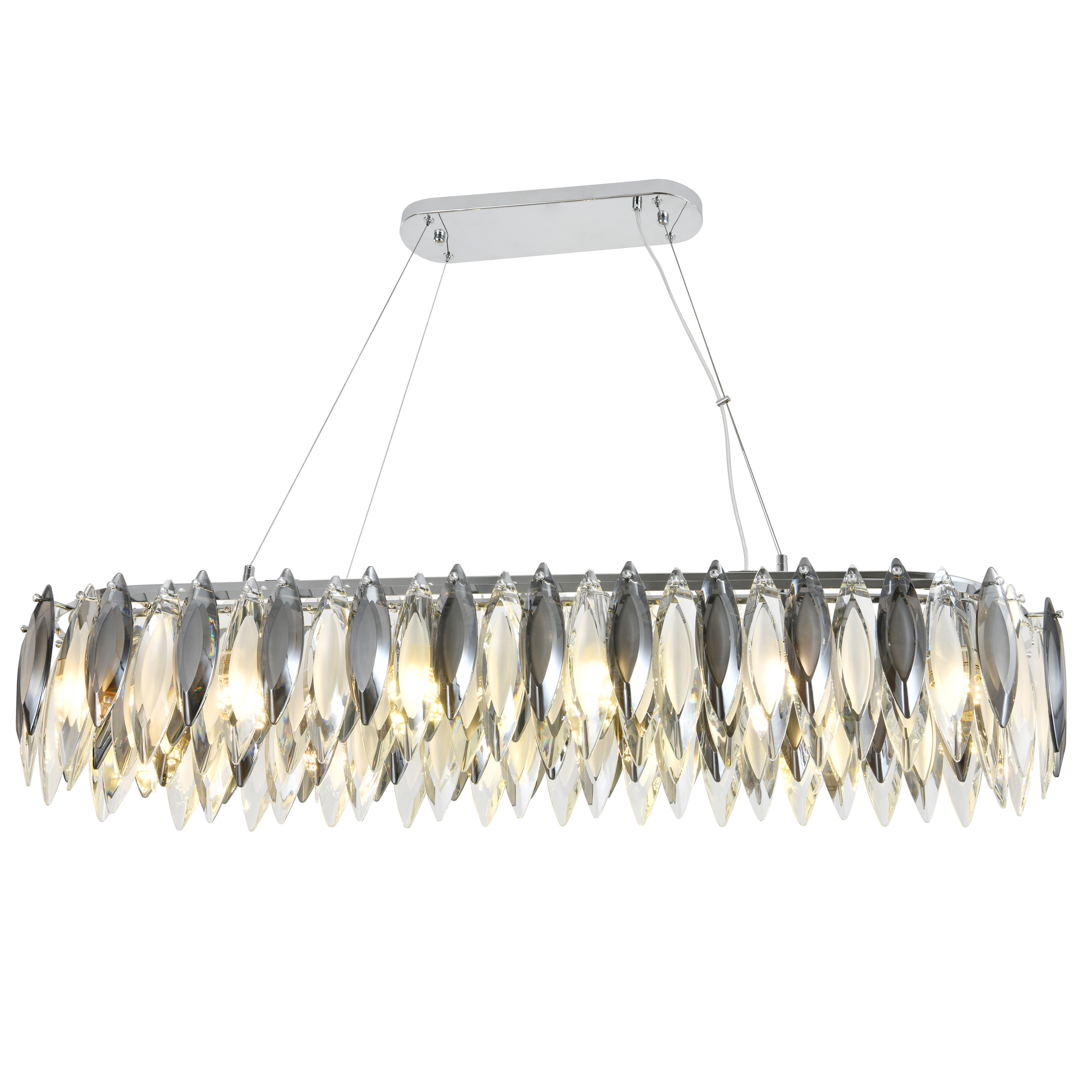 Люстра подвесная вытянутой формы из коллекции New Ton выполнена из металла, гальванизированного в цвет хрома, и декорирована прозрачным и дымчатым хрусталем вытянутой формы высшей категории. Премиальное качество и неповторимый дизайн светильника идеально подойдут как в классические, так и современные интерьеры. Из данной коллекции светильников можно сделать индивидуальный заказ любого цвета и размера.