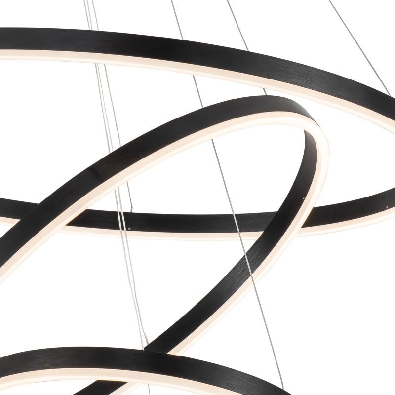 Люстра подвесная из коллекции Planetary имеет арматуру из сплава алюминия, обработанную по технологии брашинг, и анодированную в черный цвет. Светодиодные источники света закрыты белым матовым акрилом. Все модели коллекции Planetary комплектуются пультом дистанционного управления 2,4G и драйвером высокого качества с европейским сертификатом T?V.