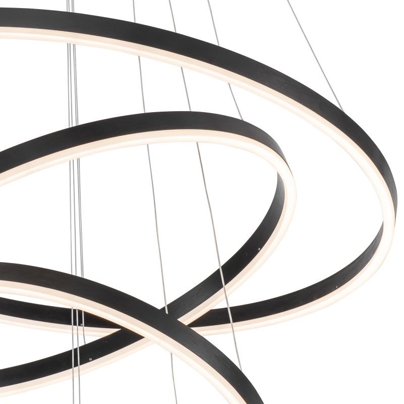 Люстра подвесная из коллекции Planetary имеет арматуру из сплава алюминия, обработанную по технологии брашинг, и анодированную в черный цвет. Светодиодные источники света закрыты белым матовым акрилом. Все модели коллекции Planetary комплектуются пультом дистанционного управления 2,4G и драйвером высокого качества с европейским сертификатом T?V.