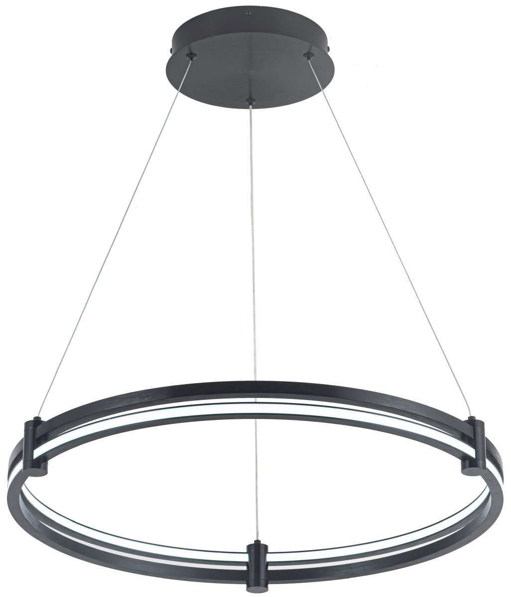Люстра подвесная из коллекции Tooring имеет арматуру из сплава алюминия, обработанную по технологии брашинг, и анодированную в черный цвет. Светодиодные источники света закрыты белым матовым акрилом. Все модели коллекции Tooring комплектуются пультом дистанционного управления 2,4G и драйвером высокого качества с европейским стандартом T?V. Пульт дистанционного управления обеспечивает переключение трех режимов световой температуры и диммирование.