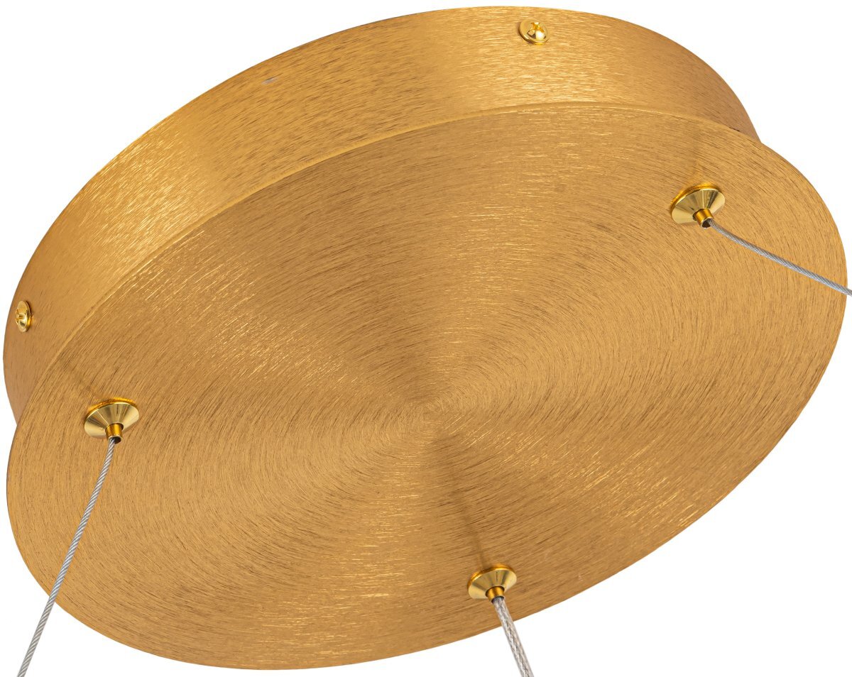 Люстра подвесная из коллекции Tooring имеет арматуру из сплава алюминия, обработанную по технологии брашинг, и анодированную в цвет латуни. Светодиодные источники света закрыты белым матовым акрилом. Все модели коллекции Tooring комплектуются пультом дистанционного управления 2,4G и драйвером высокого качества с европейским стандартом T?V. Пульт дистанционного управления обеспечивает переключение трех режимов световой температуры и диммирование.