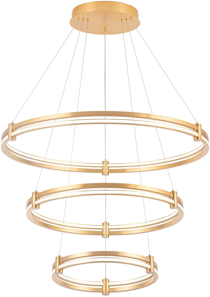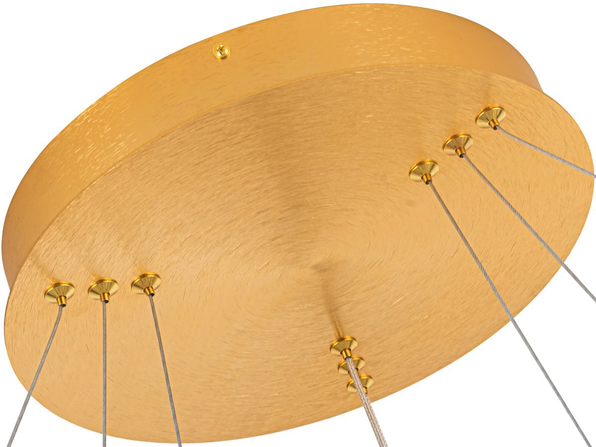 Люстра подвесная из коллекции Tooring имеет арматуру из сплава алюминия, обработанную по технологии брашинг, и анодированную в цвет латуни. Светодиодные источники света закрыты белым матовым акрилом. Все модели коллекции Tooring комплектуются пультом дистанционного управления 2,4G и драйвером высокого качества с европейским стандартом T?V. Пульт дистанционного управления обеспечивает переключение трех режимов световой температуры и диммирование.