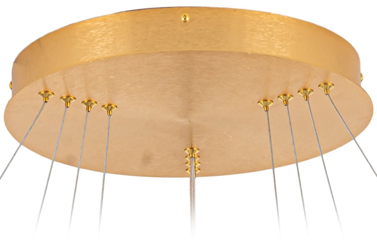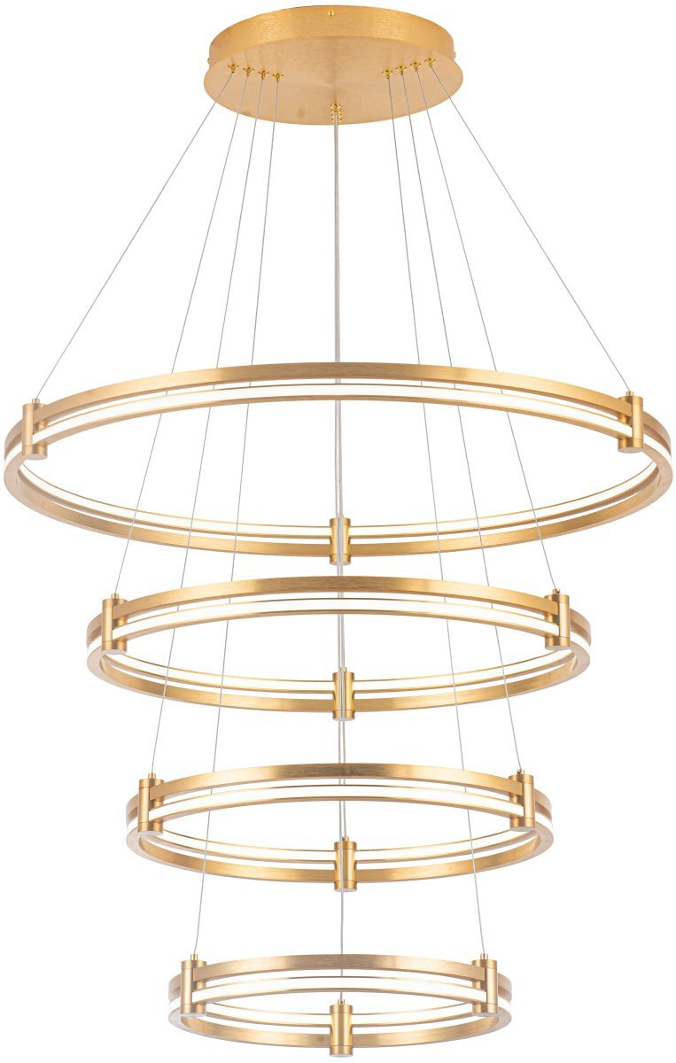Люстра подвесная из коллекции Tooring имеет арматуру из сплава алюминия, обработанную по технологии брашинг, и анодированную в цвет латуни. Светодиодные источники света закрыты белым матовым акрилом. Все модели коллекции Tooring комплектуются пультом дистанционного управления 2,4G и драйвером высокого качества с европейским стандартом T?V. Пульт дистанционного управления обеспечивает переключение трех режимов световой температуры и диммирование.