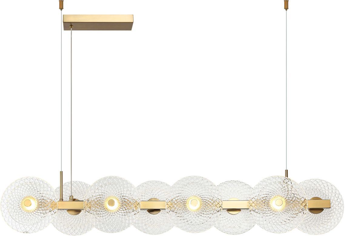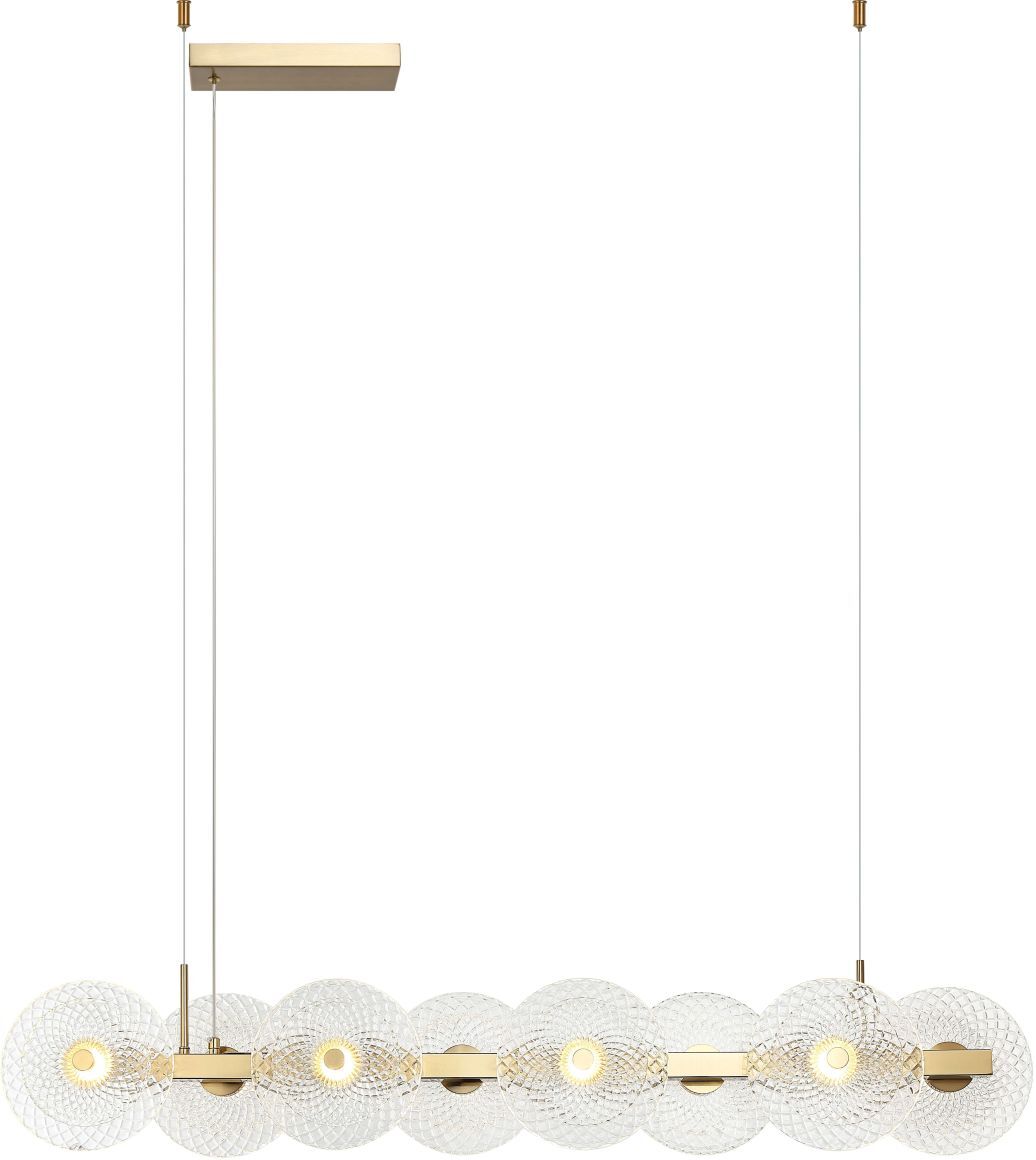 Люстра подвесная вытянутой формы эксклюзивной коллекции Sportu выполнена из металла и сплава алюминия бронзового цвета. Прозрачные плафоны имеют двойные стекла и текстурный рисунок. Светильник комплектуется драйвером высокого качества европейского стандарта T?V. Данная серия идеально сочетается с серией PORTU. Премиальное качество и неповторимый дизайн светильника идеально подойдут как в классические, так и современные интерьеры.