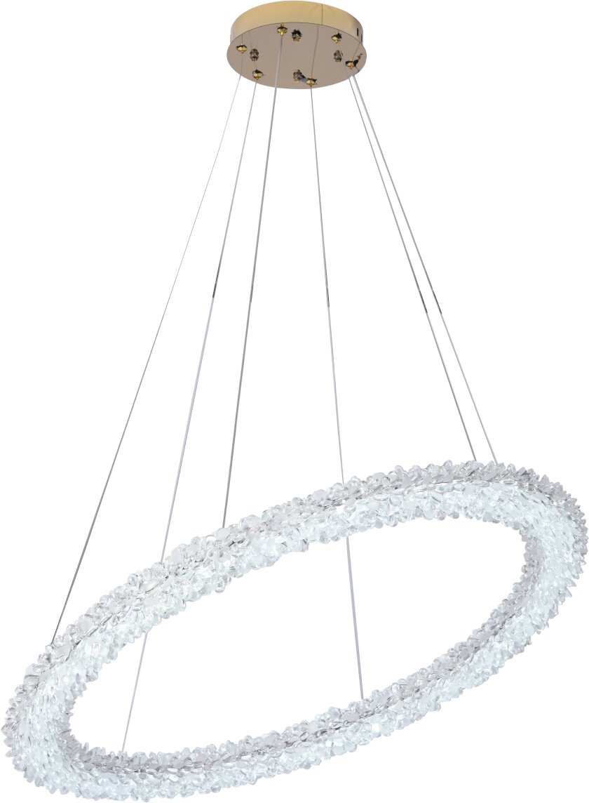 Люстра подвесная коллекции Felloria выполнена из нержавеющей стали золотого цвета и декорирована оригинальным стеклом. Модель коллекции комплектуется пультом дистанционного управления 2,4G и драйвером высокого качества. Пульт дистанционного управления обеспечивает переключение трех режимов световой температуры и диммирование.