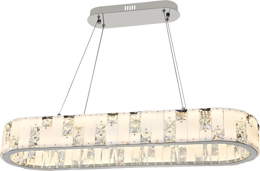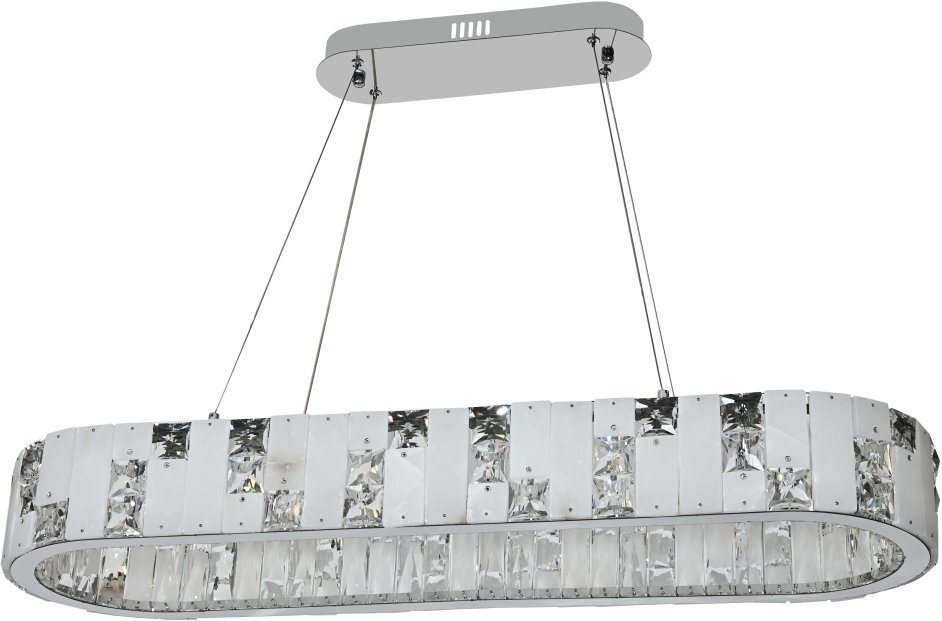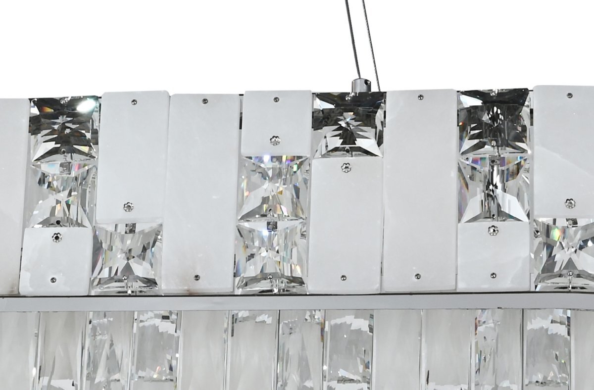 Люстра подвесная вытянутой формы эксклюзивной коллекции Cherruti выполнена из нержавеющей стали в цвете хрома и декорирована испанским камнем и текстурным хрусталем высшей категории. Модель комплектуется пультом дистанционного управления 2,4G и драйвером высокого качества европейского стандарта T?V, обеспечивающим переключение трех режимов световой температуры и диммирование. Современная форма и высокое качество светильников идеально подои?дут как в классические, так и современные дизайнерские интерьеры. Из данной коллекции светильников можно сделать индивидуальный заказ любого цвета и размера.