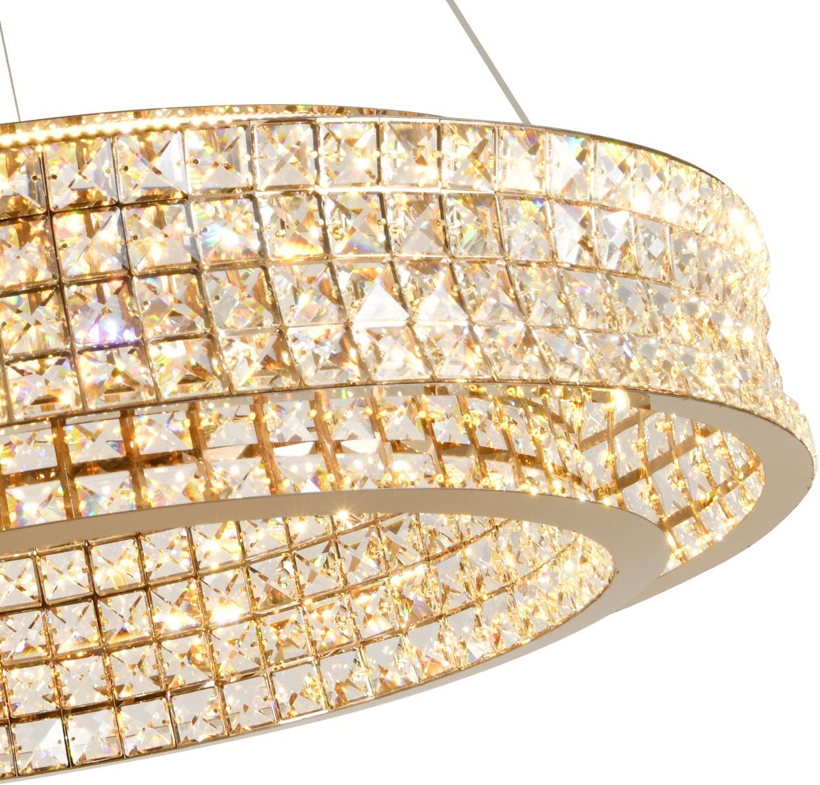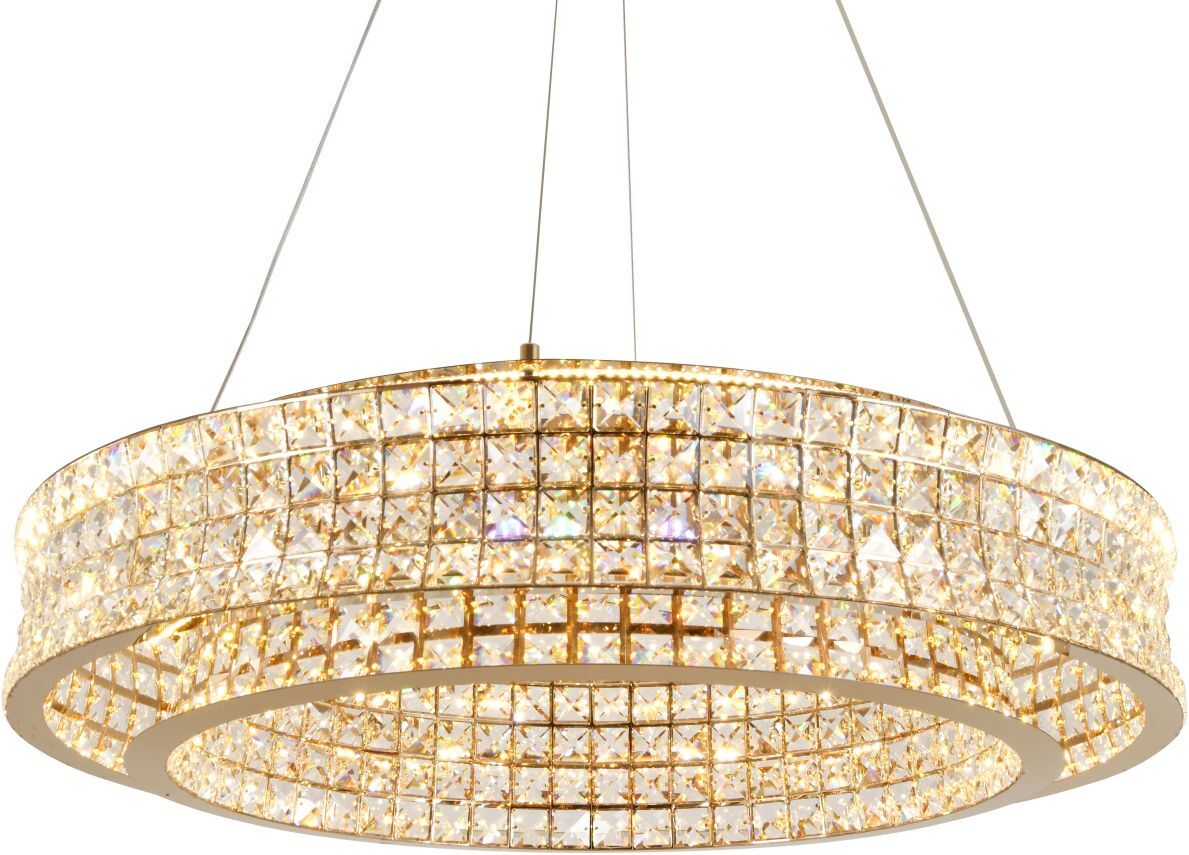 Люстра подвесная эксклюзивной коллекции Karnelli выполнена из нержавеющей стали золотого цвета и декорирована текстурным хрусталем высшей категории. Модель комплектуется пультом дистанционного управления 2,4G и драйвером высокого качества европейского стандарта T?V, обеспечивающим переключение трех режимов световой температуры и диммирование. Премиальное качество и неповторимыи? дизаи?н светильников идеально подои?дут как в классические, так и современные дизайнерские интерьеры. Из данной коллекции светильников можно сделать индивидуальный заказ любого цвета и размера.