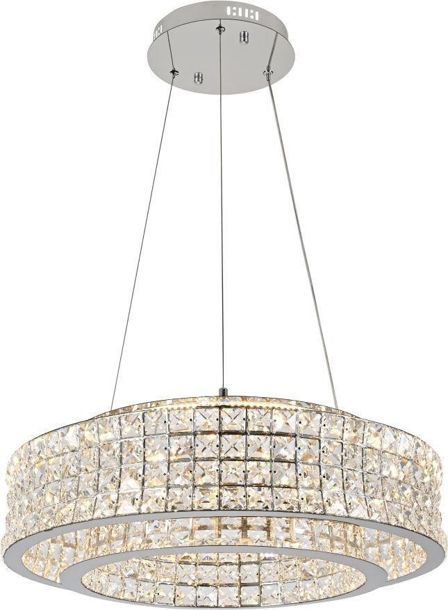 Люстра подвесная эксклюзивной коллекции Karnelli выполнена из нержавеющей стали хромированного цвета и декорирована текстурным хрусталем высшей категории. Модель комплектуется пультом дистанционного управления 2,4G и драйвером высокого качества европейского стандарта T?V, обеспечивающим переключение трех режимов световой температуры и диммирование. Премиальное качество и неповторимыи? дизаи?н светильников идеально подои?дут как в классические, так и современные дизайнерские интерьеры. Из данной коллекции светильников можно сделать индивидуальный заказ любого цвета и размера.