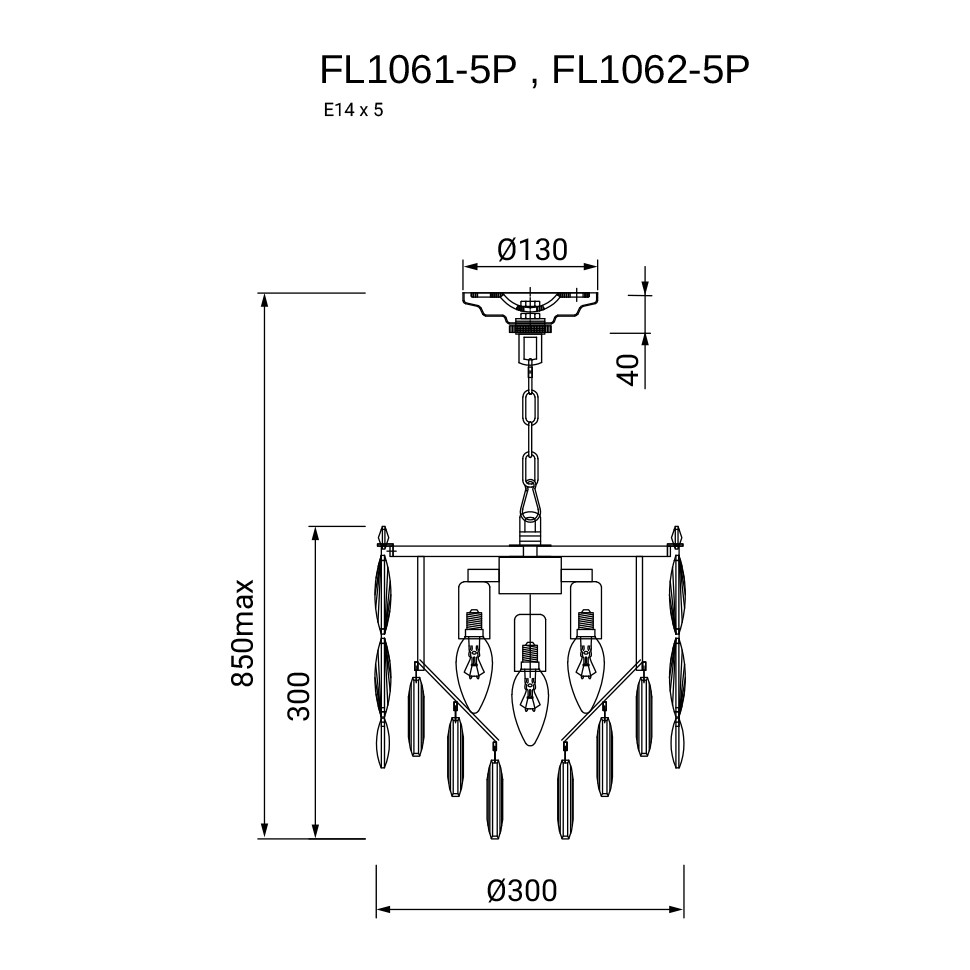Люстра подвесная The Empress Chrome FL1062-5P, E14х5