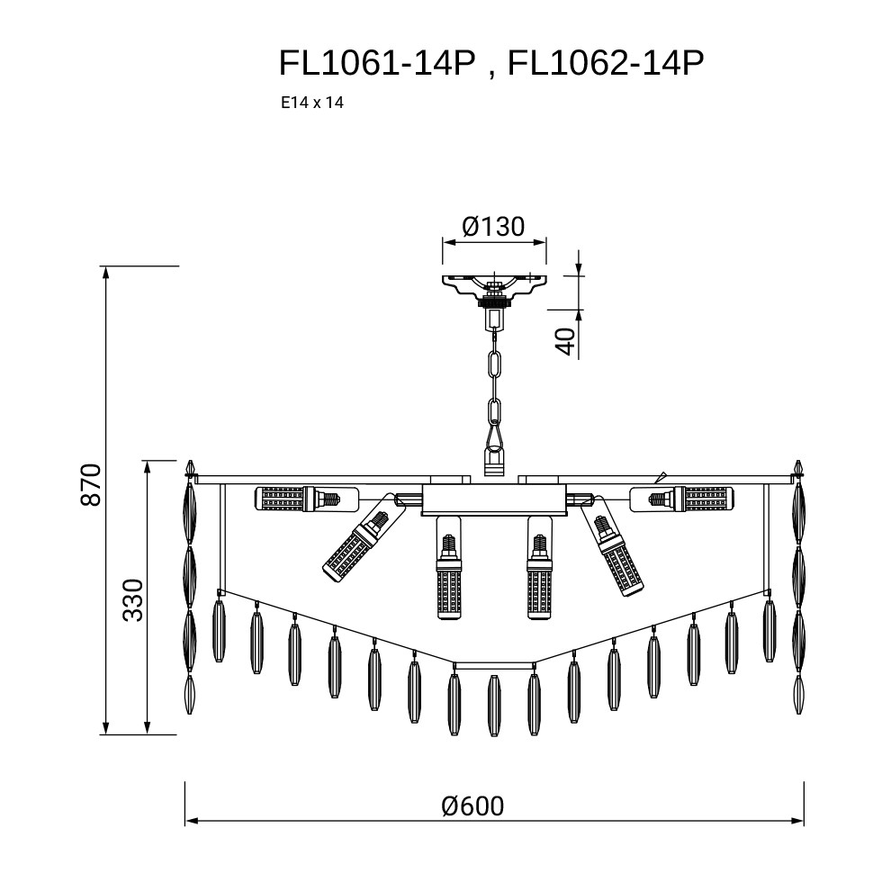Люстра подвесная The Empress Gold FL1061-14P, E14х14