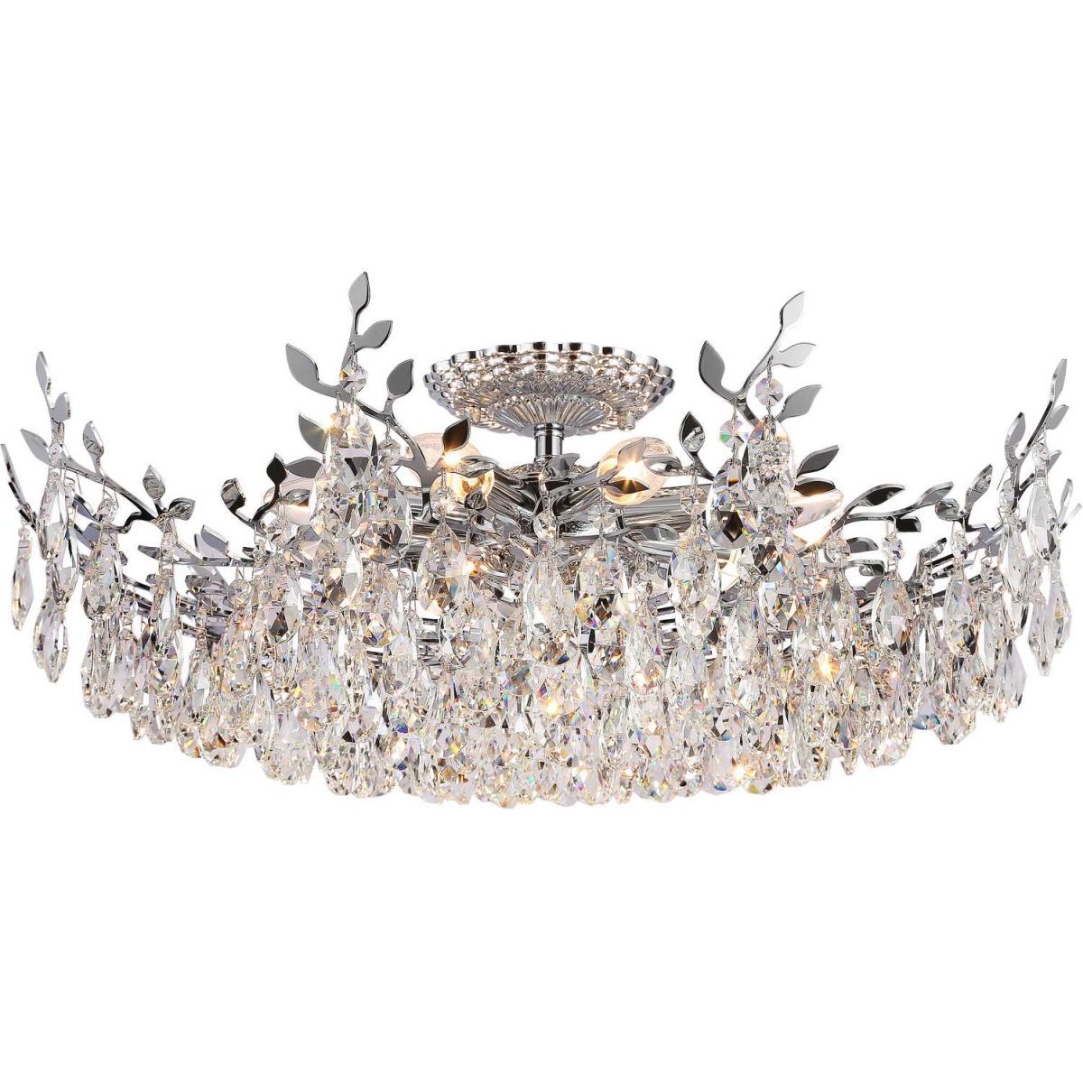 Люстра потолочная из коллекции Sofia выполнена из металла, гальванизированного в цвет хрома, и декорирована прозрачным хрусталем высшей категории миндалевидной формы. Хрусталь крепится на декоративные металлические элементы в виде веток и листьев, гальванизированные в цвет арматуры.