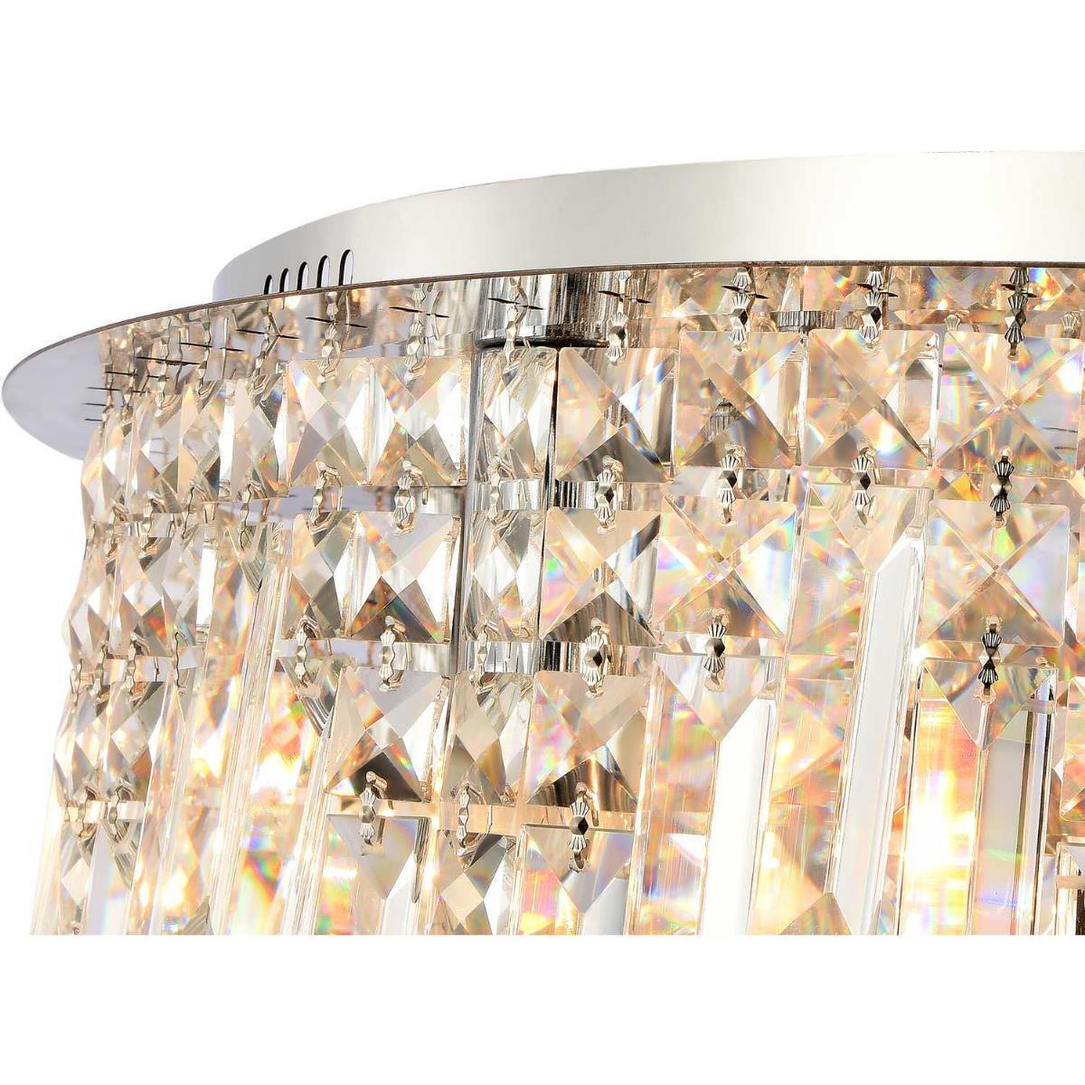 Люстра потолочная из коллекции Dinara выполнена из металла, гальванизированного в цвет хрома, и декорирована прозрачным хрусталем высшей категории прямоугольной и квадратной формы. Потолочная чаша закрыта нержавеющей сталью, отполированной до зеркального блеска. Современная форма и высокое качество светильников идеально подойдут как в классические, так и современные интерьеры.