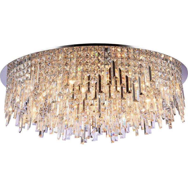 Люстра потолочная из коллекции Dinara выполнена из металла, гальванизированного в цвет хрома, и декорирована прозрачным хрусталем высшей категории прямоугольной и квадратной формы. Потолочная чаша закрыта нержавеющей сталью, отполированной до зеркального блеска. Современная форма и высокое качество светильников идеально подойдут как в классические, так и современные интерьеры.