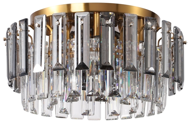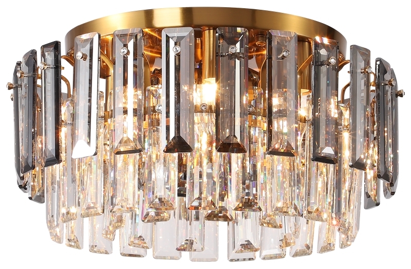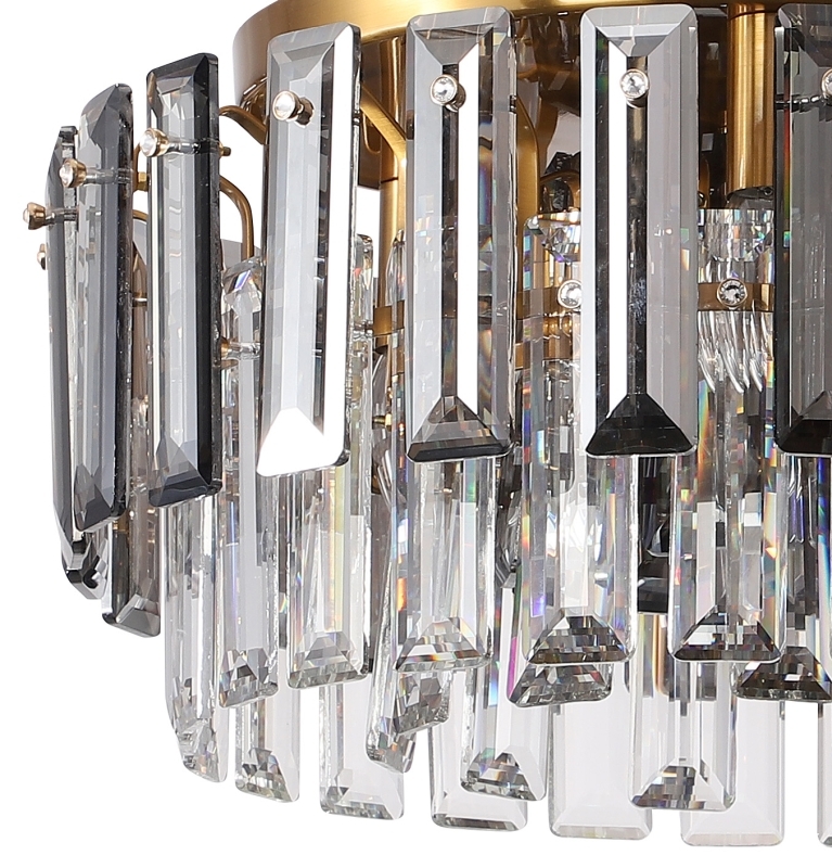 Люстра потолочная из коллекции Ton выполнена из металла, гальванизированного в цвет бронзы, и декорирована прозрачным и дымчатым хрусталем высшей категории прямоугольной формы. Люстра выглядит респектабельно и современно.