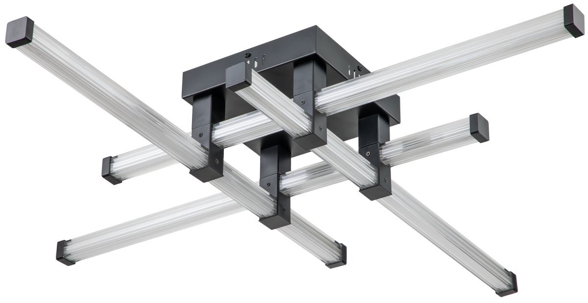 Люстра потолочная коллекции Quadro выполнена из металла, окрашенного в черный цвет, и плафона квадратной формы из прозрачного акрила с линейным рисунком. Источник света закрыт белым силиконом. Модная геометрия светильника в тренде. Люстра комплектуется пультом дистанционного управления 2,4G и драйвером высокого качества с европейским стандартом T?V. Пульт дистанционного управления обеспечивает переключение трех режимов световой температуры и диммирование.