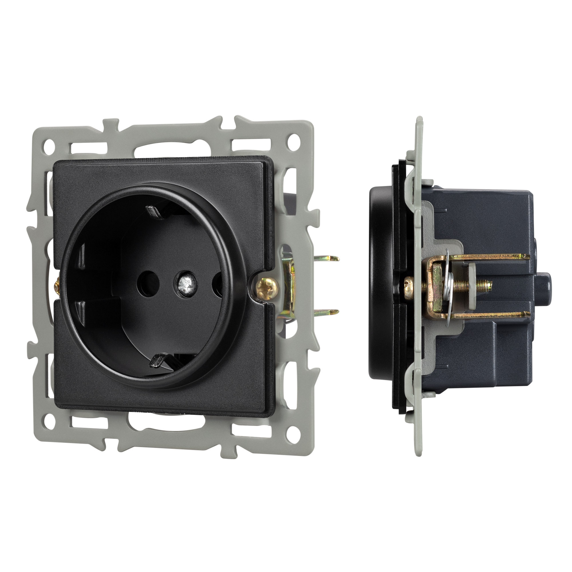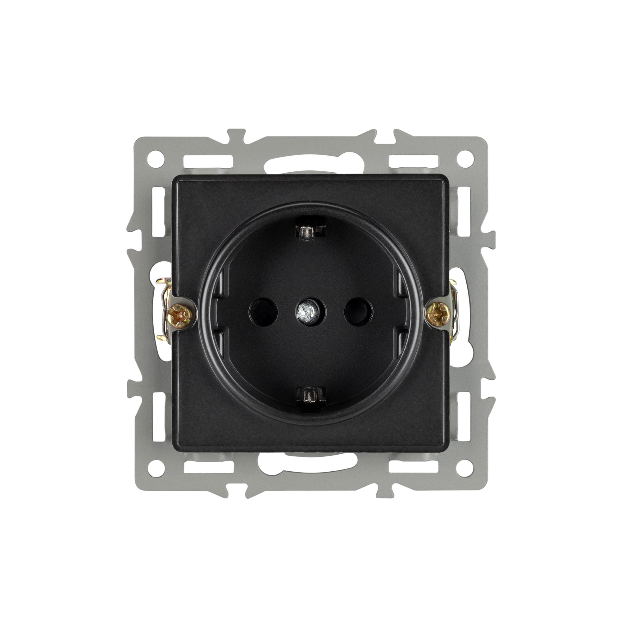 Механизм розетки с заземлением на 1 пост, с суппортом из алюминия. Цвет - черный. Степень пылевлагозащиты - IP20. Устанавливается в стандартный круглый подрозетник 220V (Арт.044895). Рабочее напряжение 110-250V. Макс. ток нагрузки 16А. Габаритные размеры: длина 74 мм, ширина 74 мм, высота 40 мм. Гарантийный срок 10 лет.