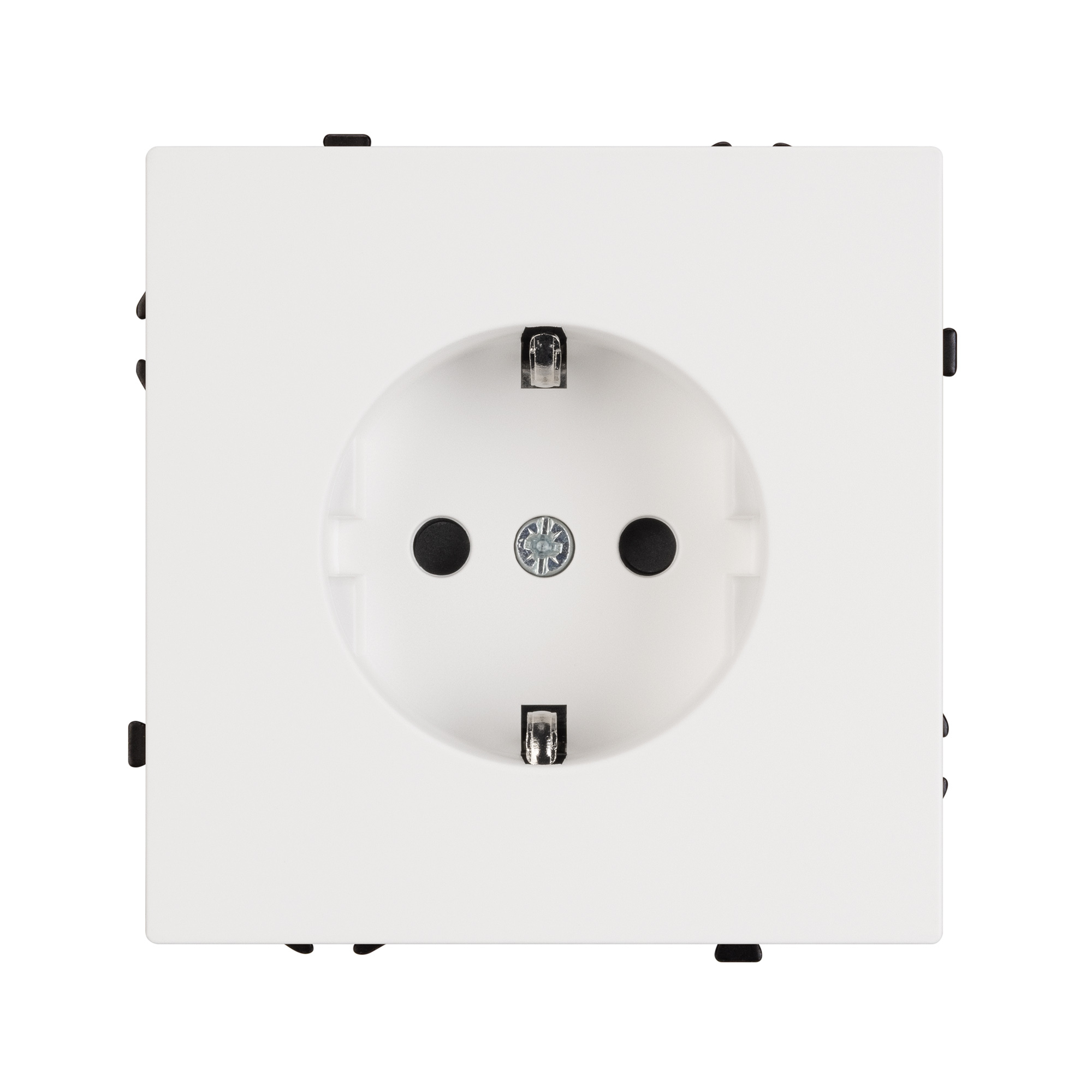 Механизм розетки с заземлением на 1 пост. Цвет - белый, с Soft-Touch покрытием. Без фронтальной рамки. Уровень пылевлагозащиты IP20. Розетка устанавливается в стандартный подрозетник круглого сечения диаметром 60мм. Габаритные размеры: длина 71 мм, ширина 71 мм, высота 44 мм. Гарантийный срок 10 лет.