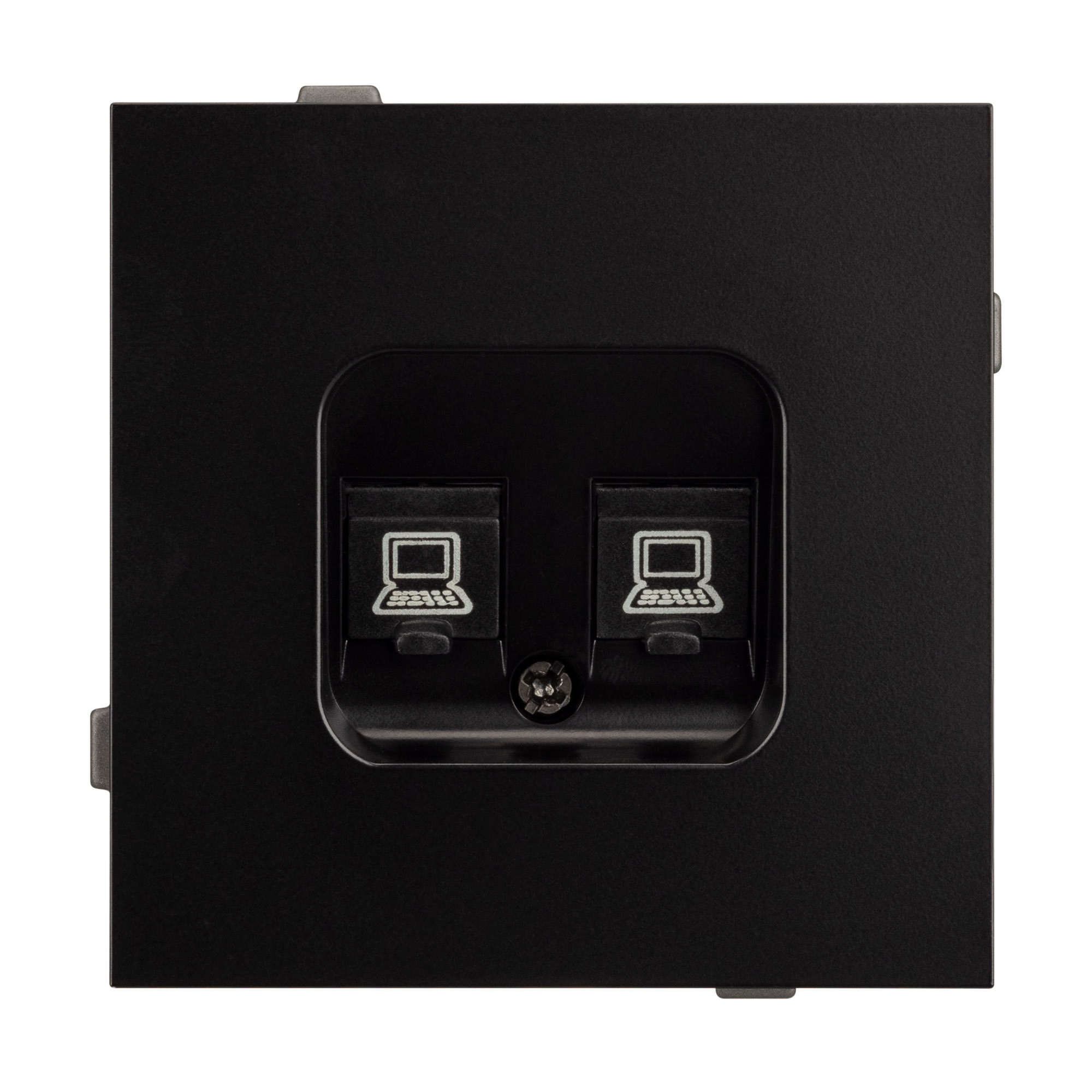 Механизм компьютерной розетки на 2 поста 6-й категории. Цвет - черный. Без фронтальной рамки. Уровень пылевлагозащиты IP20. Розетка устанавливается в стандартный подрозетник круглого сечения диаметром 60мм. Габаритные размеры: длина 71 мм, ширина 71 мм, высота 42 мм. Гарантийный срок 10 лет.