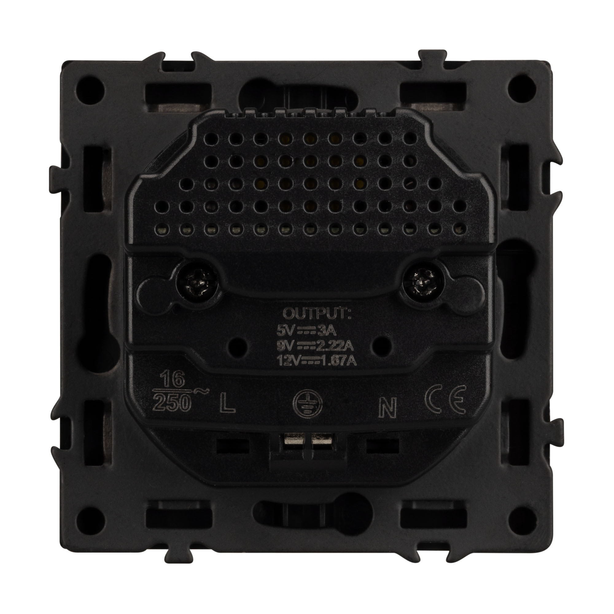 Механизм розетки с заземлением 1 пост 2 USB Type A+C порта. Цвет - серый, с Soft-Touch покрытием. Без фронтальной рамки. Уровень пылевлагозащиты IP20. Розетка устанавливается в стандартный подрозетник круглого сечения диаметром 60мм. Габаритные размеры: длина 71 мм, ширина 71 мм, высота 53 мм. Гарантийный срок 10 лет.