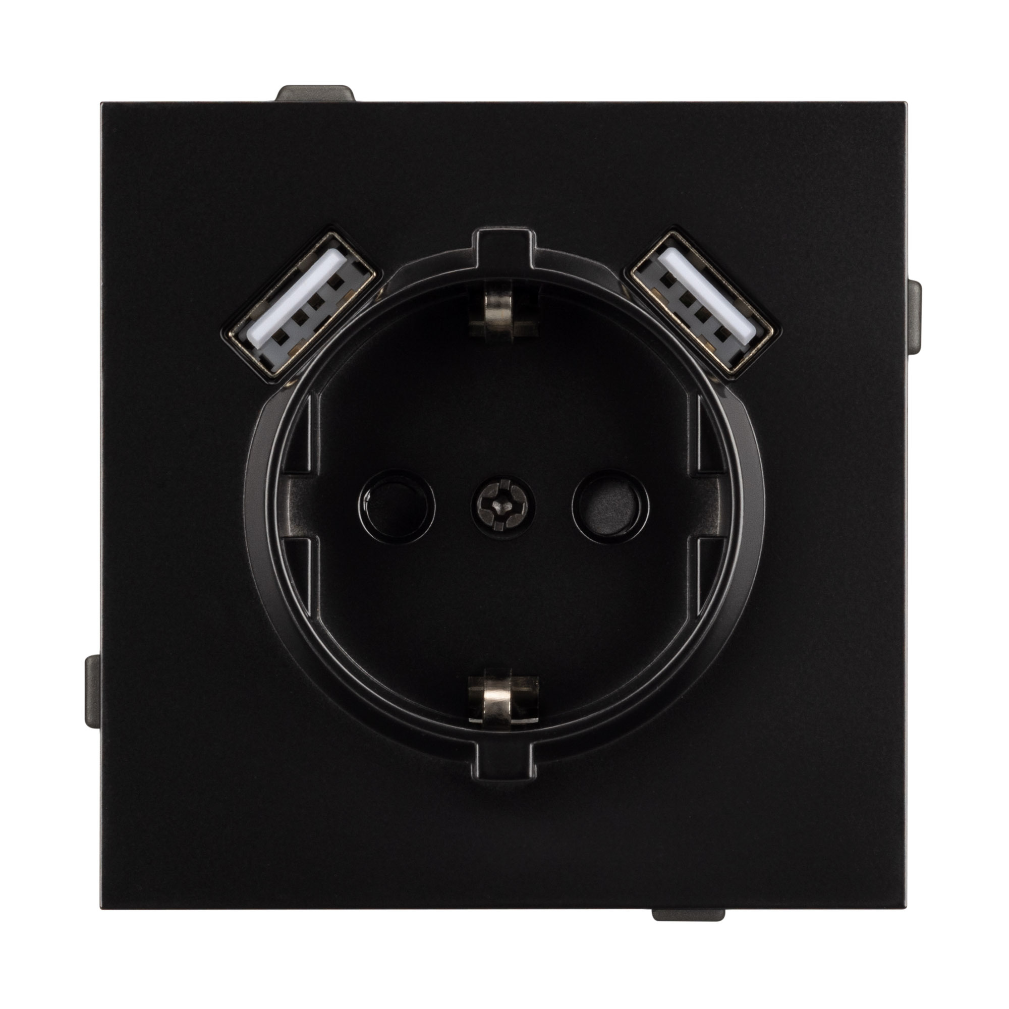 Механизм розетки с заземлением на 1 пост и 2USB Type A порта. Цвет - черный. Без фронтальной рамки. Уровень пылевлагозащиты IP20. Розетка устанавливается в стандартный подрозетник круглого сечения диаметром 60мм. Габаритные размеры: длина 71 мм, ширина 71 мм, высота 53 мм. Гарантийный срок 10 лет.